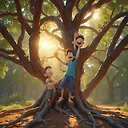Enchanting Pixar Style 3D Render: Tree Branch Hands in Sunlight
